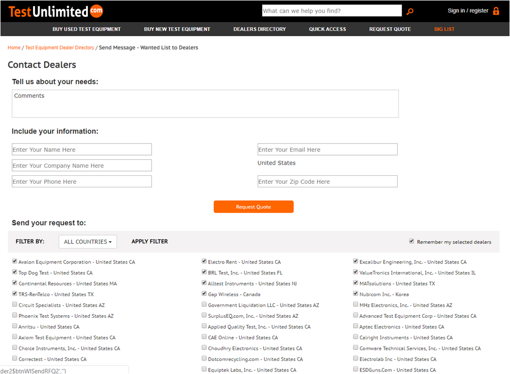 Find the very best test suppliers quickly via TU’s Dealer Directory (over 200 dealers globally).